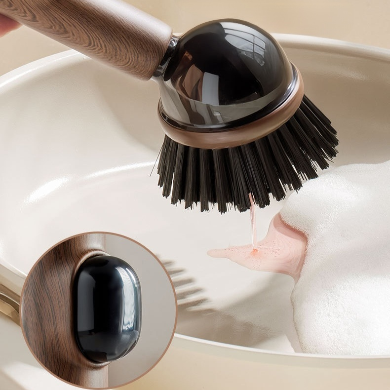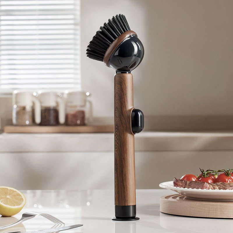 木目調吸盤付き立てられる液体注入型鍋用ブラシ